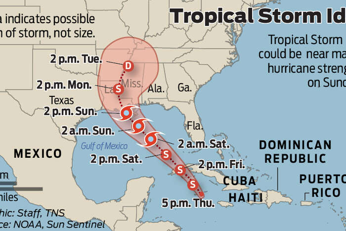 Tropical Storm Ida forecast places landfall just outside Texas. The NHC in an updated advisory at 430pm said Air Force. Winds 25 mph 40 kmh.